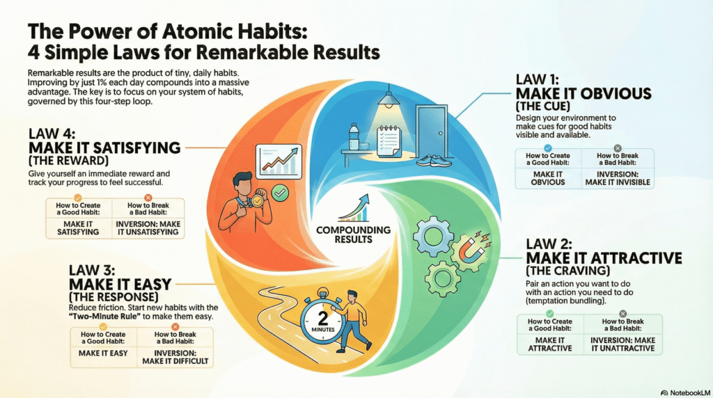 Good habits can change your life, but most people struggle to build them consistently. That is the exact problem Atomic Habits by James Clear tries to solve. The book explains why habits fail, how to fix them and how small steps can compound into major change. This summary walks you through the main ideas of the book so you can pick up the core lessons without reading it cover to cover. The goal is to give you a clear, practical understanding of how habits actually work and how you can redesign them to support your goals.